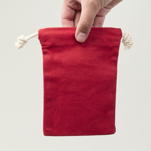 SAQUITO DE ALGODÓN EN COLOR ROJO, REUTILIZABLE Y BIODEGRADABLE. DISEÑO COMPACTO Y FUNCIONAL, IDEAL PARA REGALOS PEQUEÑOS, MUESTRAS, JOYERÍA O USO DIARIO.