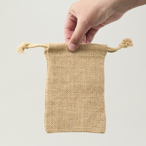 Saquito pequeño de yute sin recubrimiento interior, 100% biodegradable. Incluye cordón de cierre para asegurar el contenido. Ideal para muestras, regalos pequeños o productos promocionales.